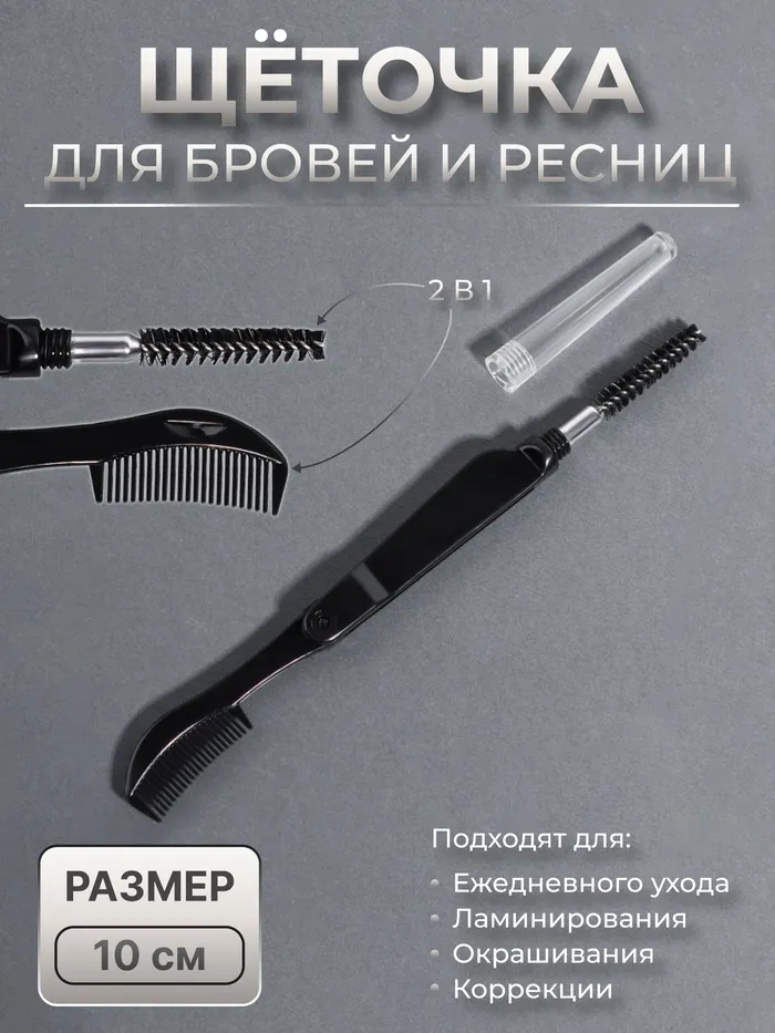 Щеточка для бровей и ресниц, 10 см, 2 в 1, чёрная