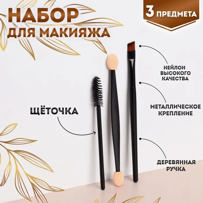 Набор для макияжа, 3 предмета, цвет чёрный