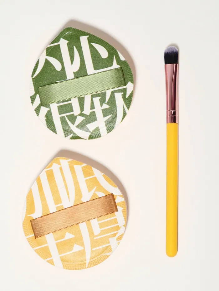 Набор для макияжа, 3 предмета: пуховки - 2 шт., кисть - 1 шт.