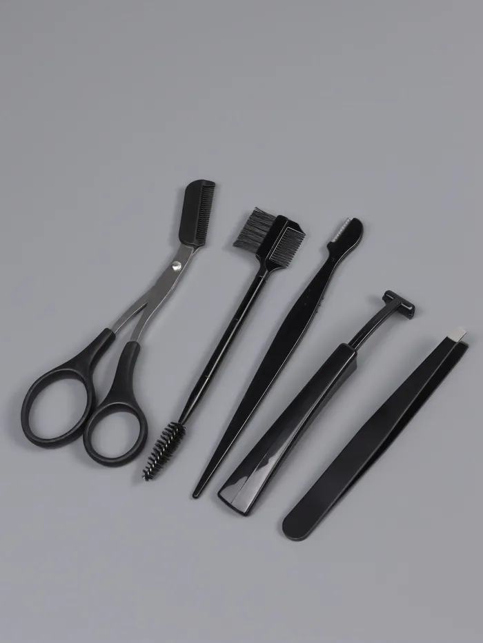 Набор для коррекции бровей, 5 шт.: пинцет, ножницы, 2 бритвы, щётка-расчёска