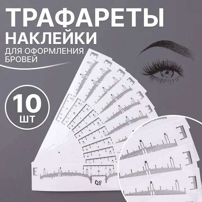 Трафареты - наклейки для оформления бровей, набор - 10 шт.