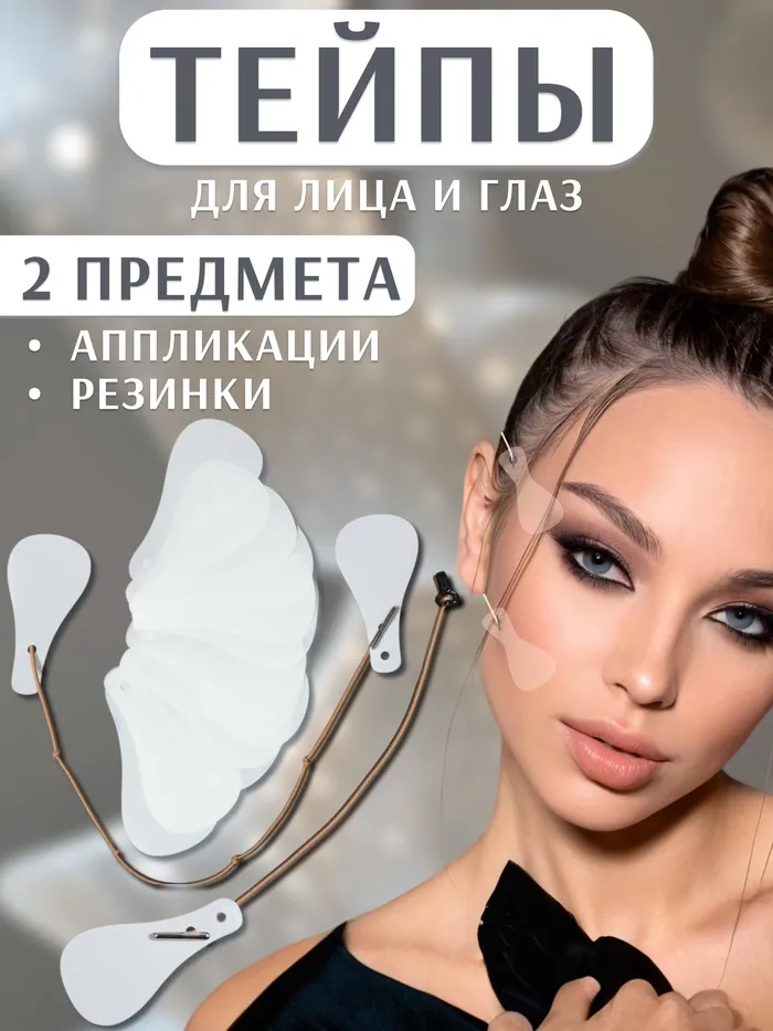 Тейпы под макияж для коррекции овала лица, набор - 2 предмета (аппликации, резинки)
