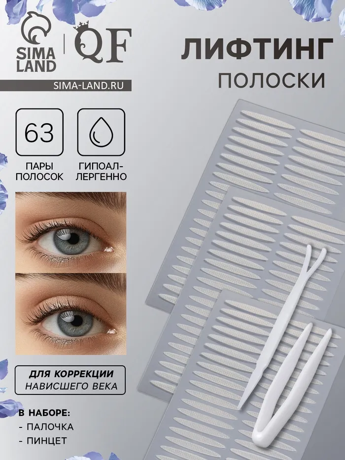 Лифтинг полоски для коррекции век, набор - 3 предмета: полосы (63 пары), палочка, пинцет