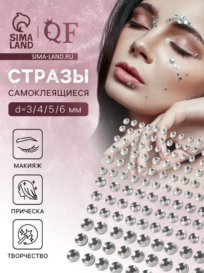 Наклейки для макияжа «Стразы», d=3/4/5/6 мм, на клеевой основе, серебристые