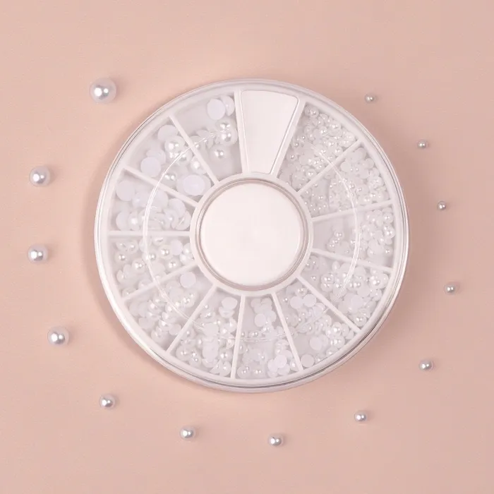 Стразы для декора, жемчужные, объёмные, 12 ячеек, перламутровые