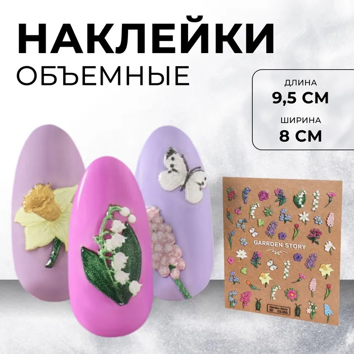 Наклейки для ногтей «Дары природы», объёмные, разноцветные