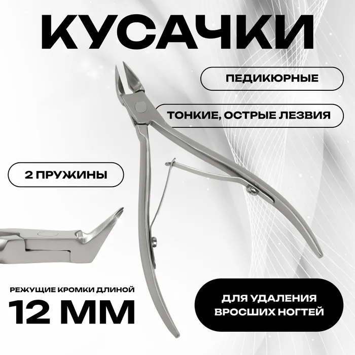 Кусачки педикюрные, 2 пружины, 10.5 см, длина лезвия-12 мм
