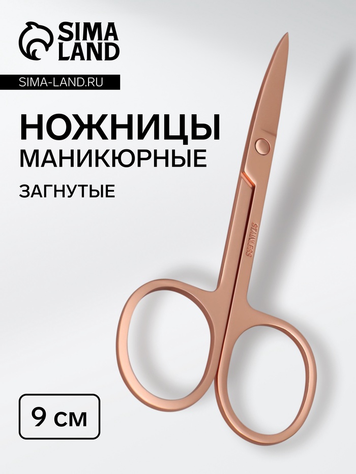 Ножницы маникюрные, загнутые, 9 см, цвет розовое золото