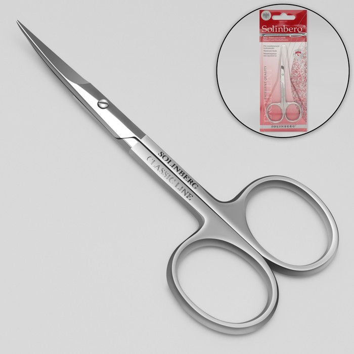 Ножницы маникюрные Solinberg, для кутикулы, загнутые, узкие, 10 см, в блистере, цвет матовый серебристый, 62000/2