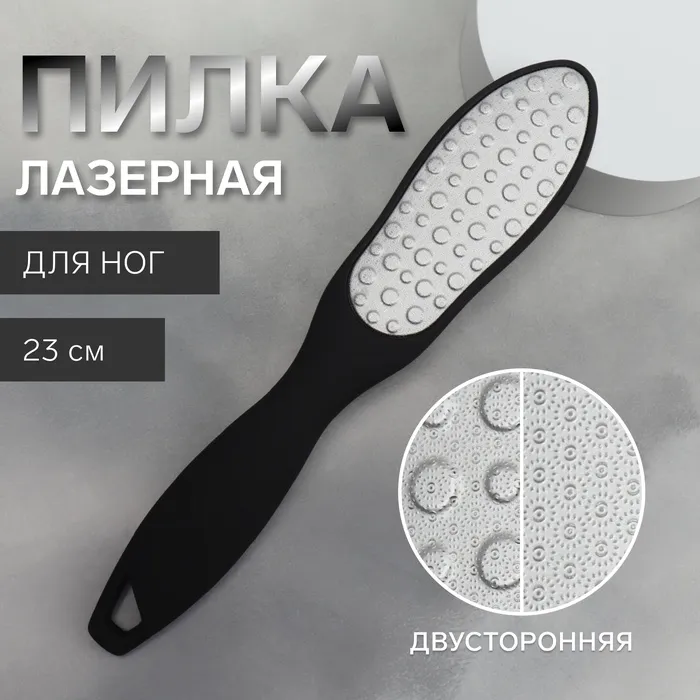 Пилка для пяток, лазерная, двусторонняя, с пилкой, прорезиненная ручка, 22 см, чёрная
