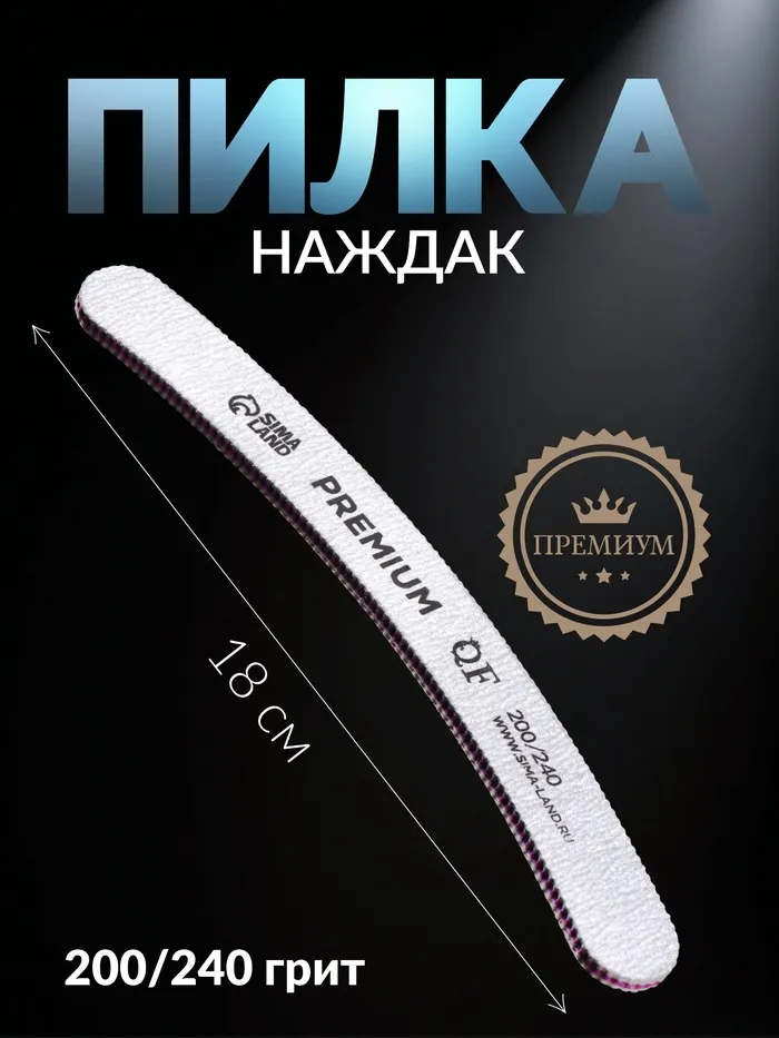 Пилка для ногтей «PREMIUM», бумеранг, 200/240 грит, 18 см, серая