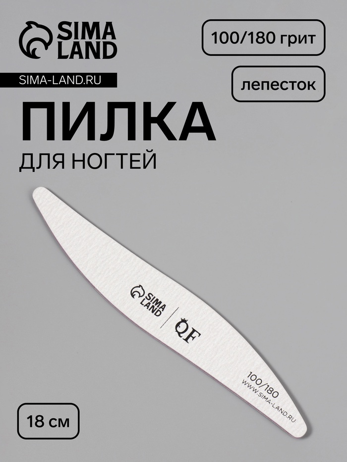 Пилка для ногтей, лепесток, 100/180 грит, 18 см, серая