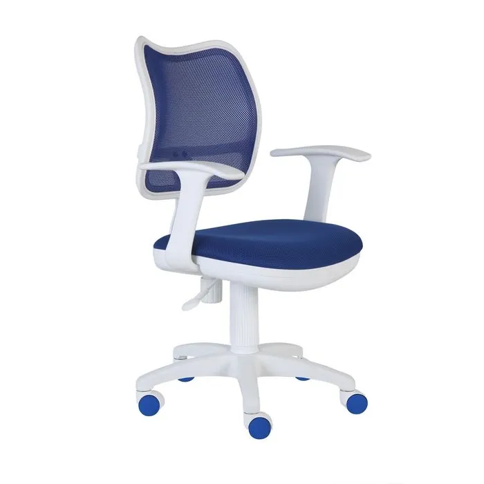 Кресло Бюрократ, с подлокотником, синий, спинка сетка, белый пластик, CH-W797/BL/TW-10