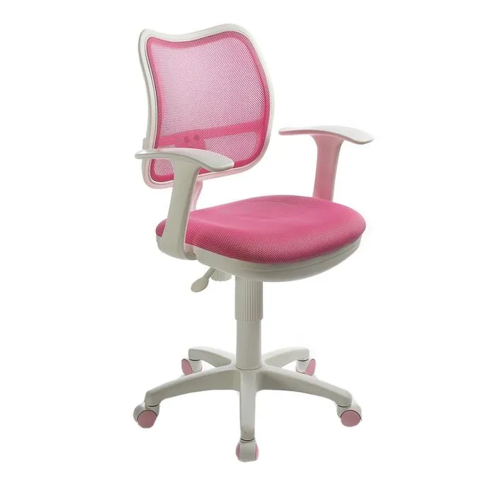 Кресло Бюрократ, с подлокотникам, розовый, спинка сетка, белый пластик, CH-W797/PK/TW-13A