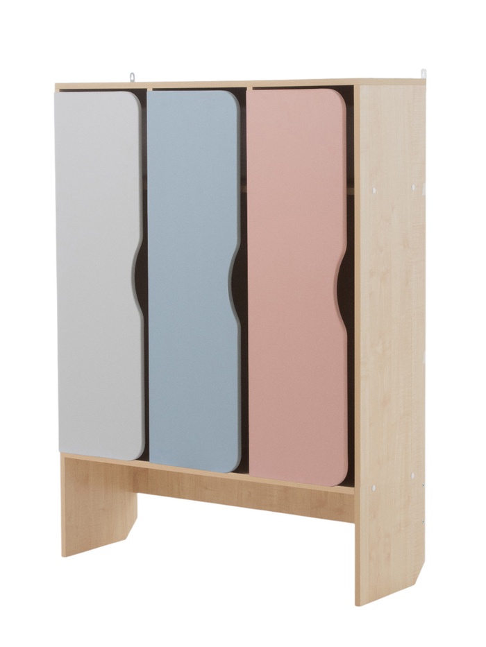 Шкаф для детского сада «Скандинавия», 3 секции, с нишей под скамью, 964×320×1300 мм, цвет клён/розовый/кенди/серый