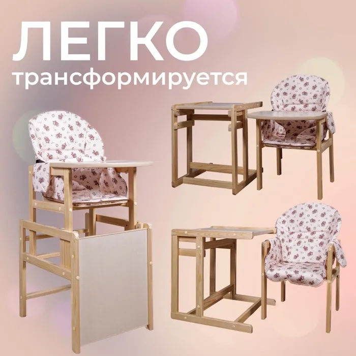 Стульчик для кормления деревянный «Космонавты», трансформер, бежевый