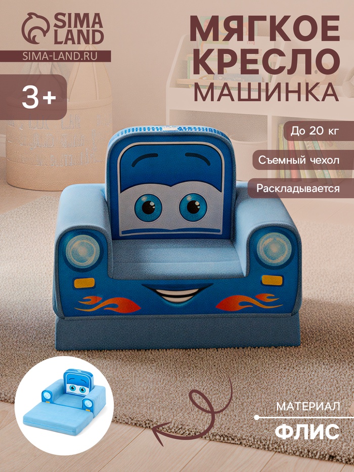 Мягкое кресло «Машинка синяя», раскладное