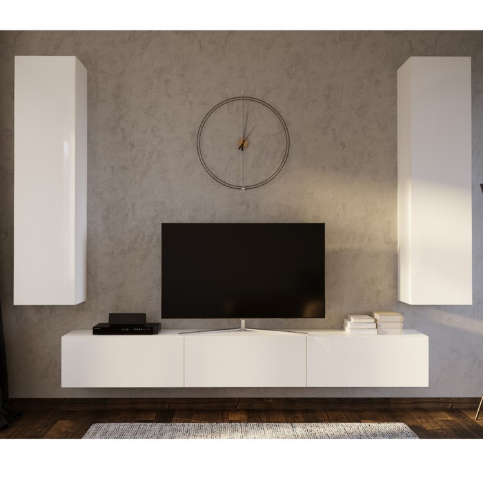 Гостиная подвесная «Флорис 2», белый глянец/белый
