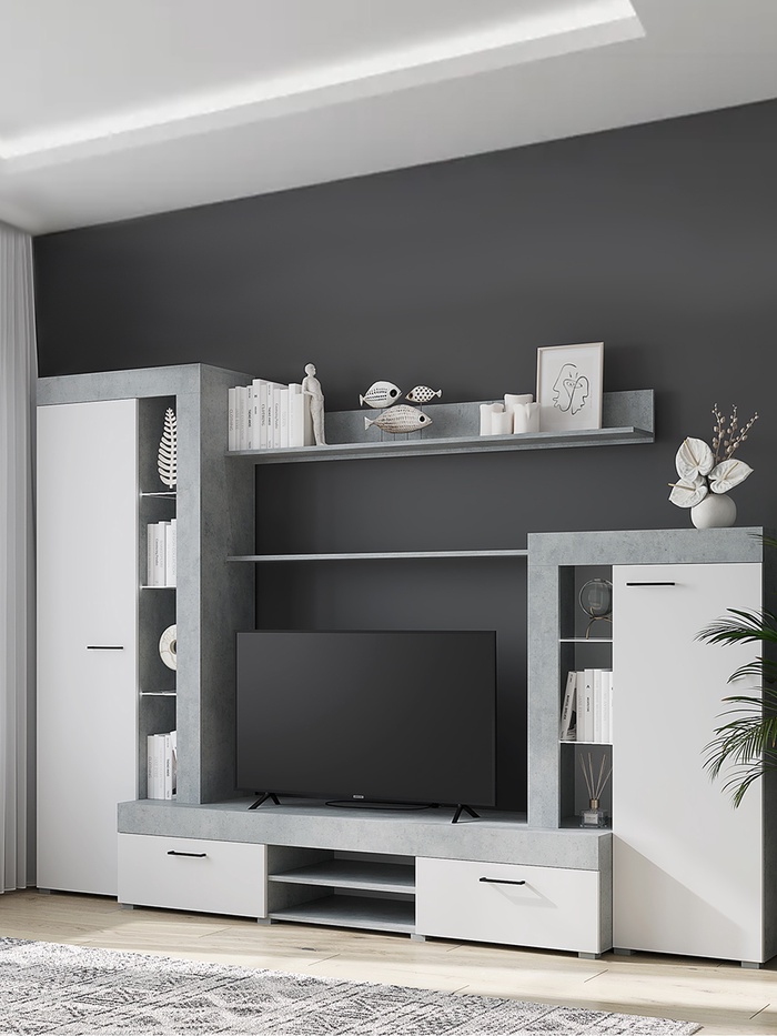Стенка в гостиную «Дельта», 2648×456×1874 мм, цвет бетон/белый