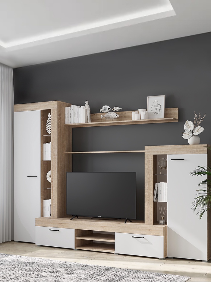 Стенка в гостиную «Дельта», 2648×456×1874 мм, цвет сонома/белый