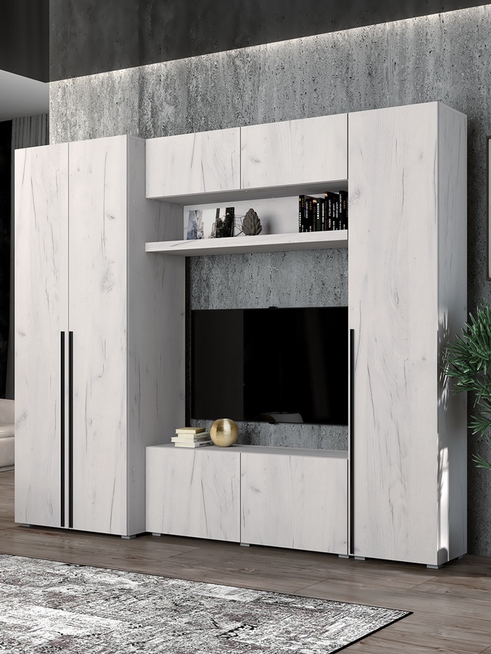 Гостиная «Норден», 2450×530×2000 мм, цвет дуб крафт белый