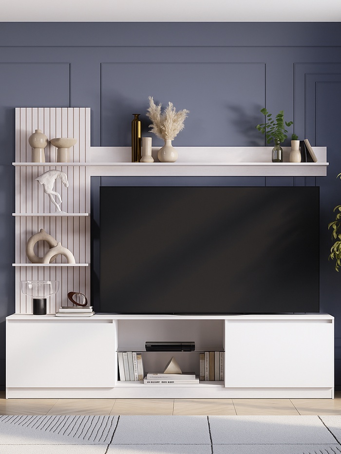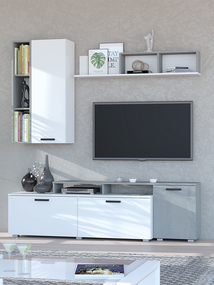 Гостиная модульная «Эльза», 1800×400×1532 мм, цвет бетонный камень/белый