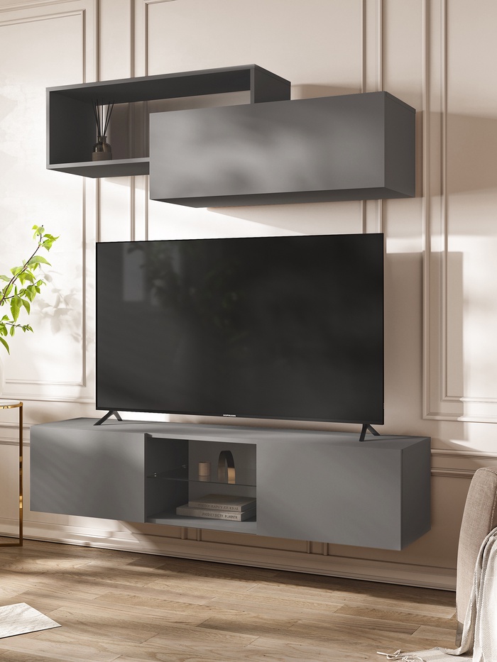 Гостиная «Норд», тумба 1500×350×330 мм, полка 1388×350×460 мм, цвет графит/графит