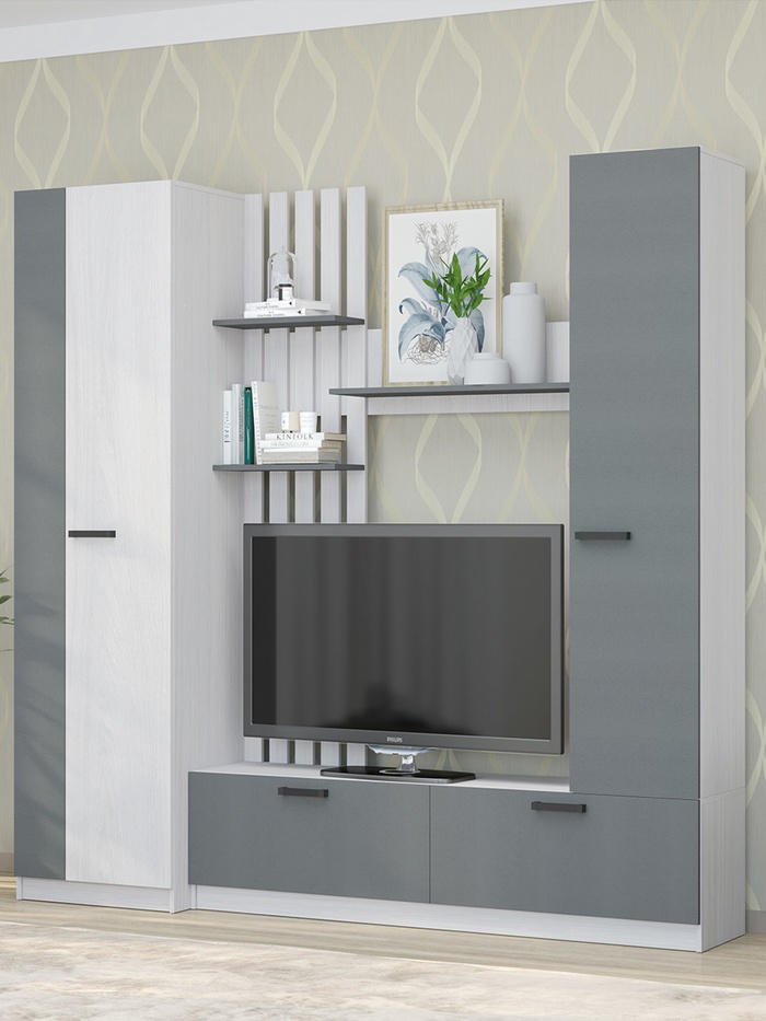 Гостиная «Айвори», 2706×519×1850 мм, цвет графит/белый