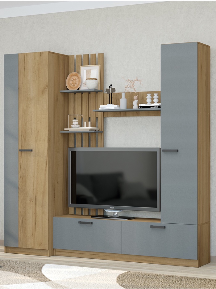Гостиная «Юджи», 2300×470×2100 мм, цвет анкор светлый/графит