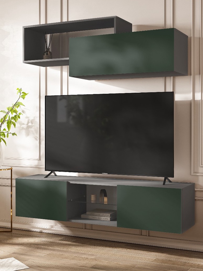 Гостиная «Норд», тумба 1500×350×330 мм, полка 1388×350×460 мм, цвет изумруд/графит