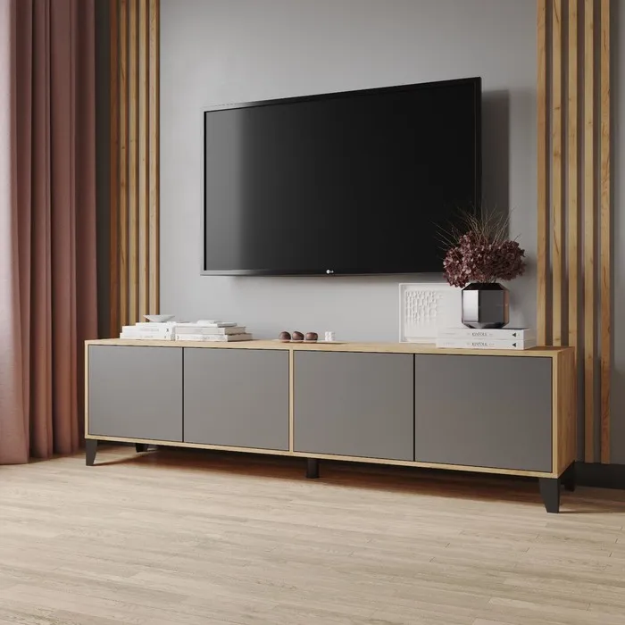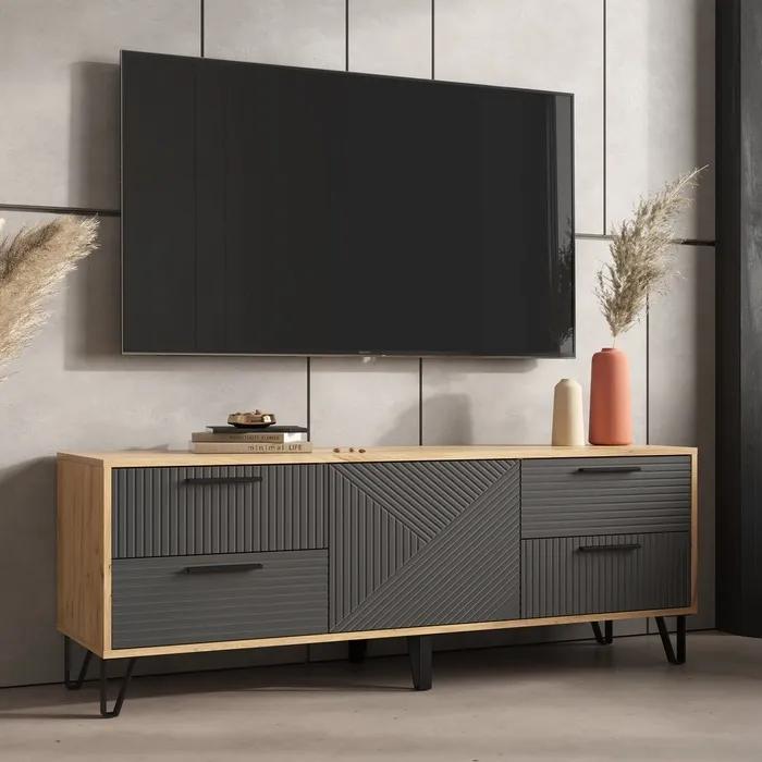 Тумба под ТВ «Флэш», с ящиками, 1502×426×542 мм, цвет браш графит МДФ/дуб крафт