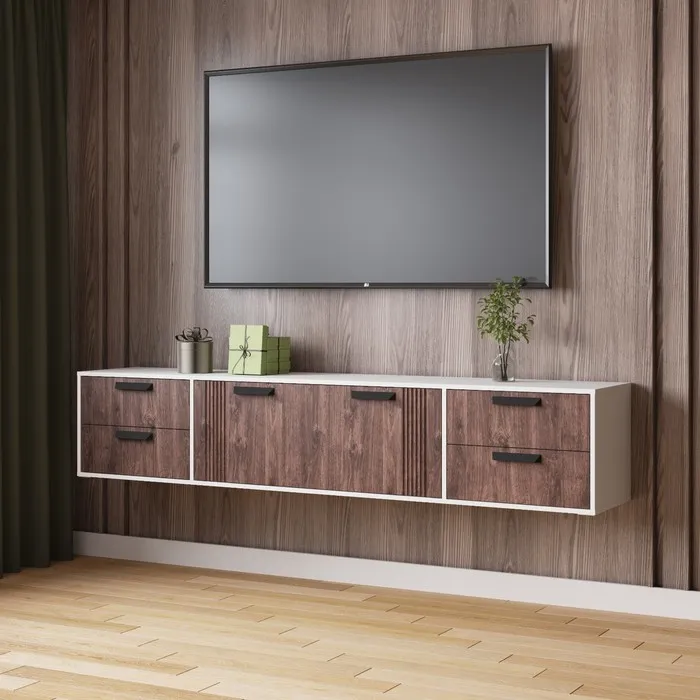 Тумба под ТВ подвесная «Сити», напольная, 2000×346×330 мм, цвет крафт белый