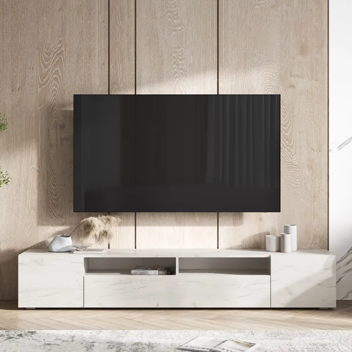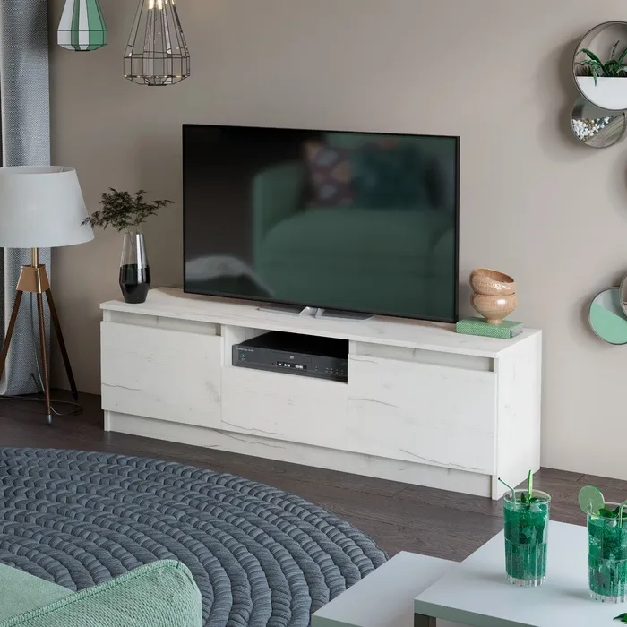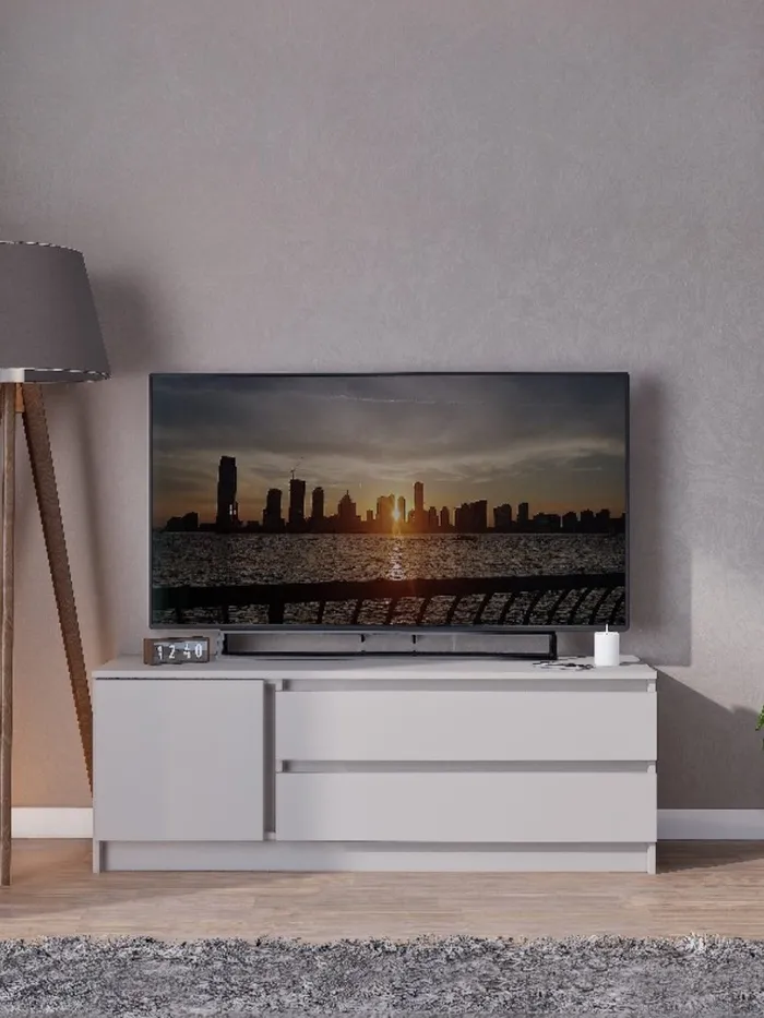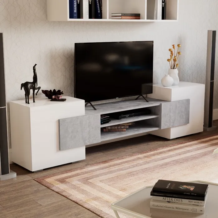 Тумба под ТВ «Ларго 03», 2020×355×520 мм, цвет белый/цемент светлый