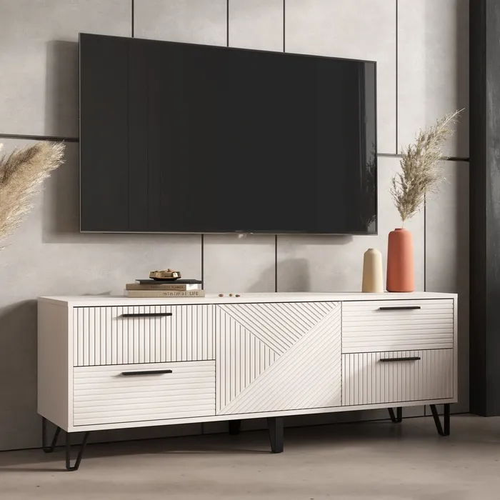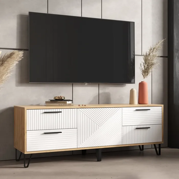 Тумба под ТВ «Флэш», с ящиками, 1502×426×542 мм, цвет браш вайт МДФ/дуб крафт