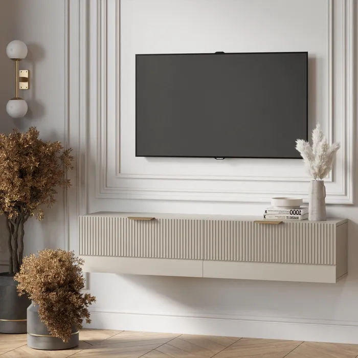 Тумба под ТВ подвесная «Орнелла», 1400 мм, 1400×320×300 мм, МДФ, бежевый матовый/кашемир