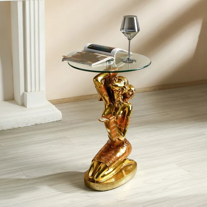 Стол декоративный "Африканка с ребёнком на спине" золото 42х42х64 см