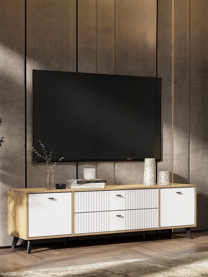 Тумба под ТВ «Милан», 2 ящика, 1801×401×526 мм, цвет белый/дуб золотой