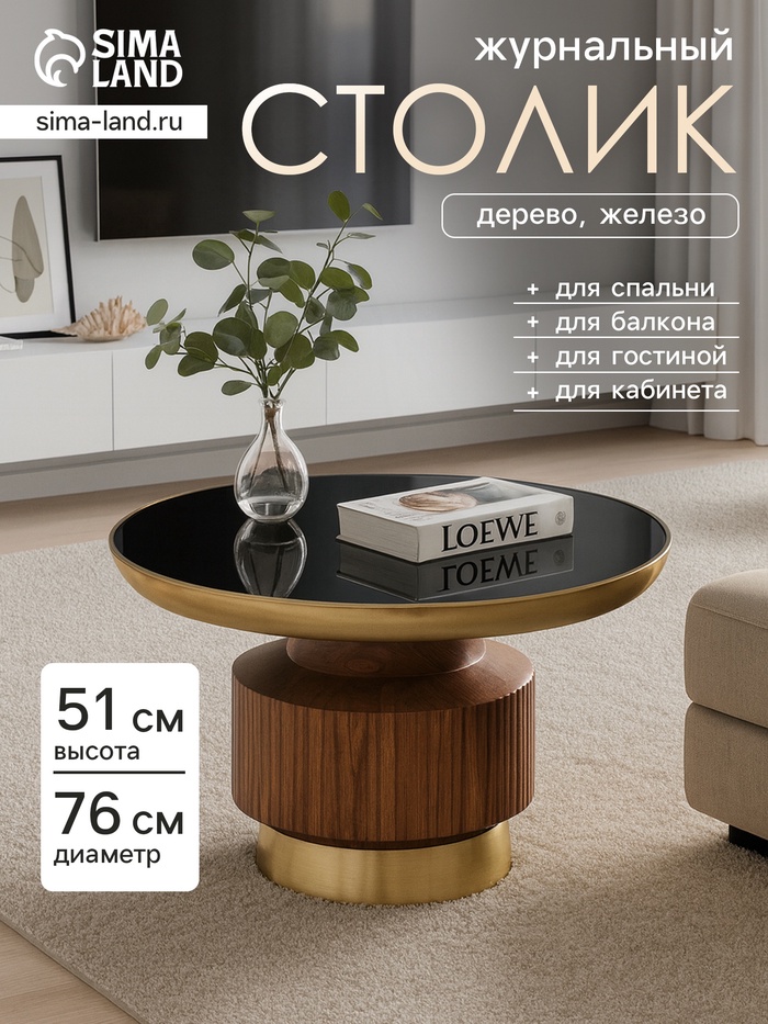 Столик журнальный «Грильяж», 76×76×51 см, железо, дерево