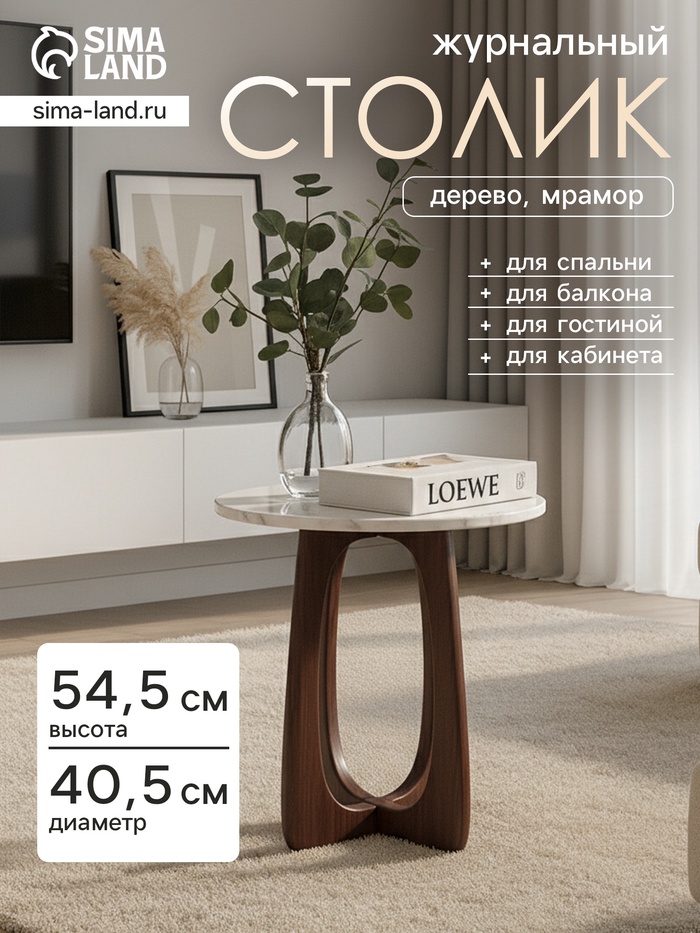 Столик журнальный «Милки», 40.5×40.5×54.5 см, дерево, мрамор