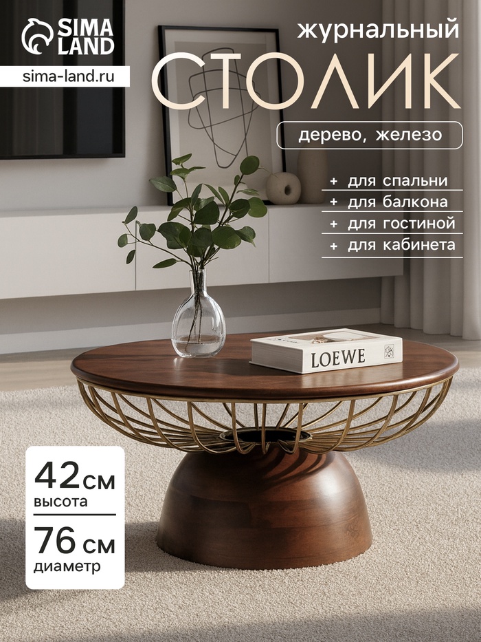 Столик журнальный «Фундук», 76×76×42 см, дерево, железо