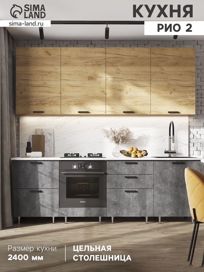 Кухонный гарнитур в потолок «Рио №2», 2400 мм, цвет дуб крафт/бетон тёмный/дуб крафт/антарес