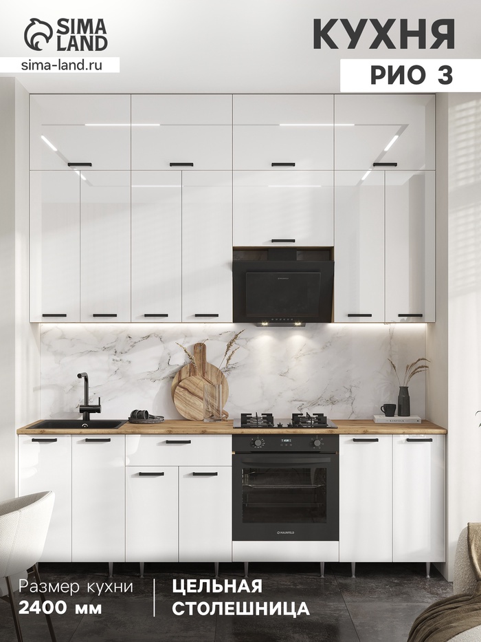 Кухонный гарнитур в потолок «Рио №3», 2400 мм, цвет белый глянец/дуб крафт/дуб вотан