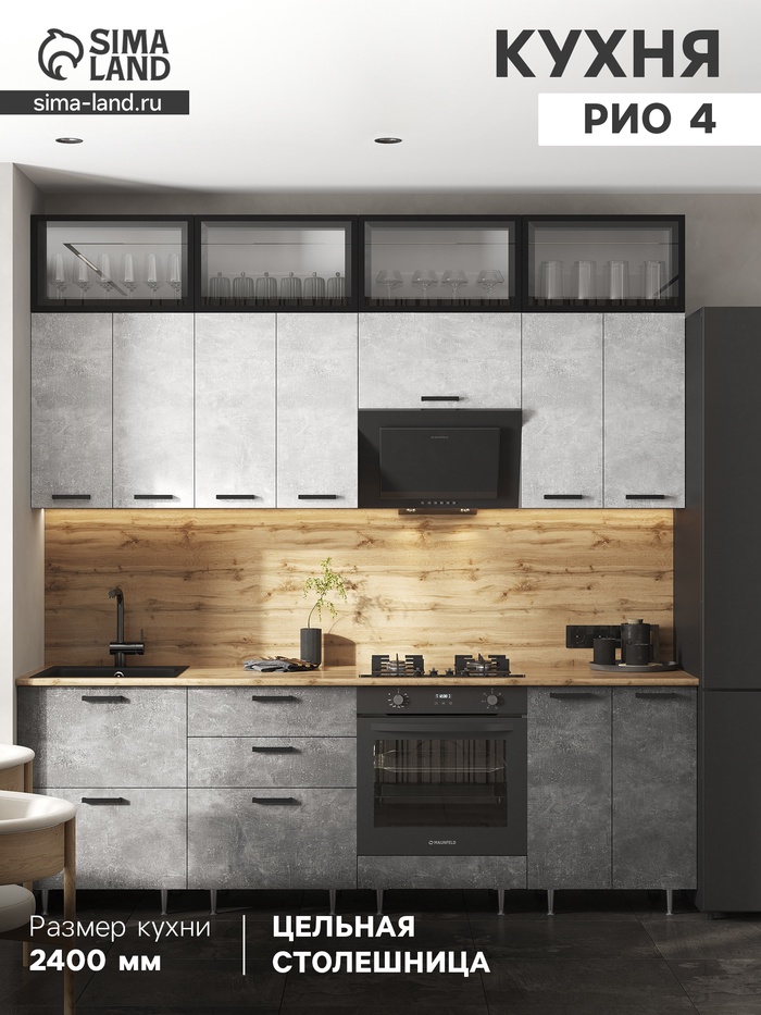 Кухонный гарнитур в потолок «Рио №4», 2400 мм, цвет бетон светлый/бетон тёмный/графит/дуб вотан