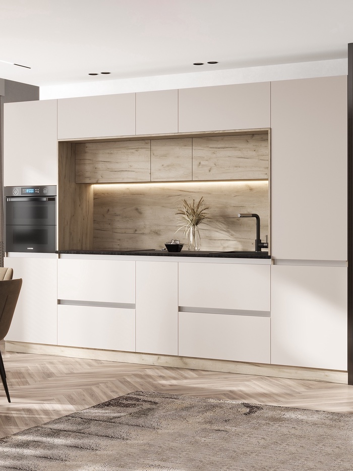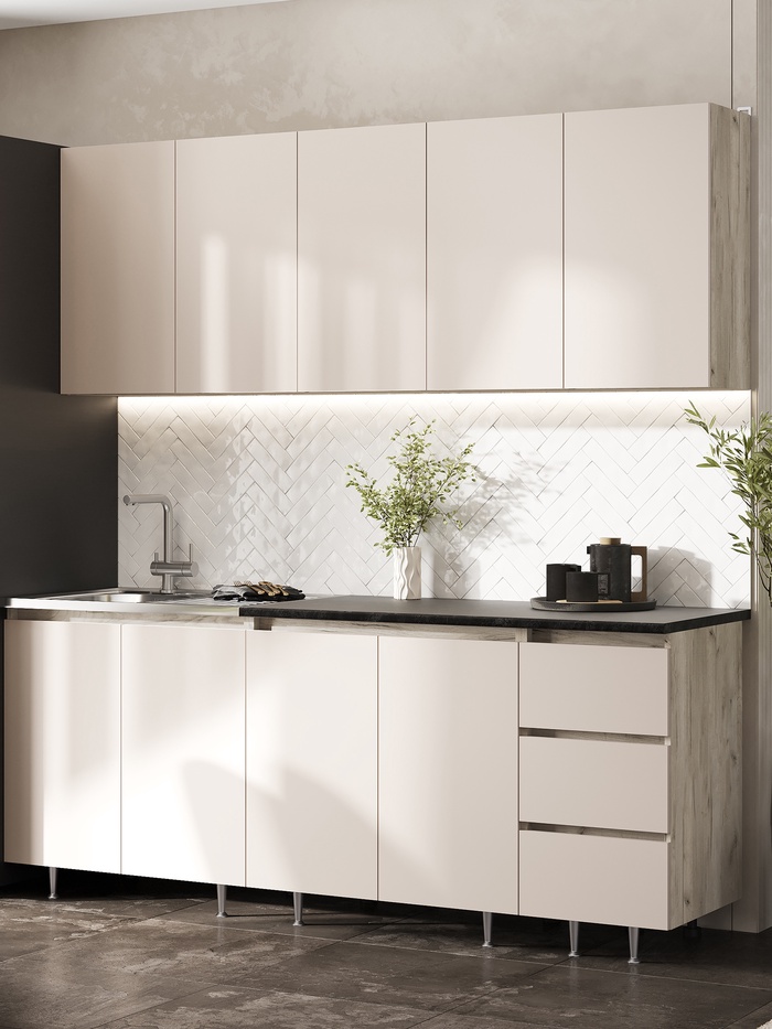 Кухонный гарнитур прямой «Челси №2», 2000 мм, цвет кашемир/крафт серый