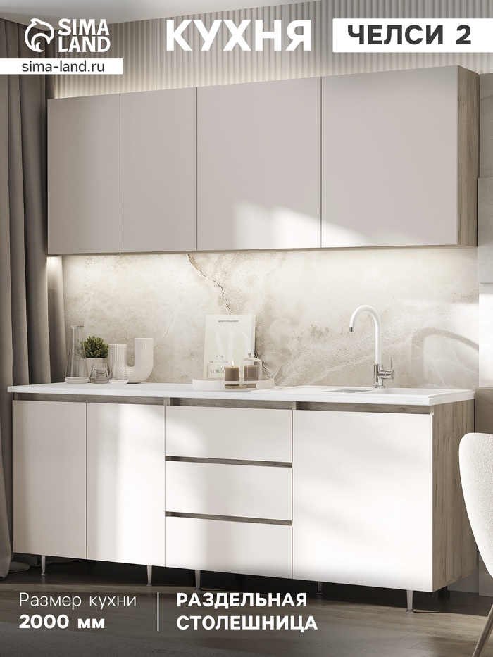 Кухонный гарнитур прямой «Челси», 2000 мм, цвет кашемир/крафт серый