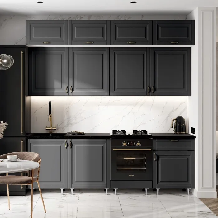 Кухонный гарнитур трёхуровневый в потолок «Престиж», с столешницей, 2400 мм, цвет графит софт
