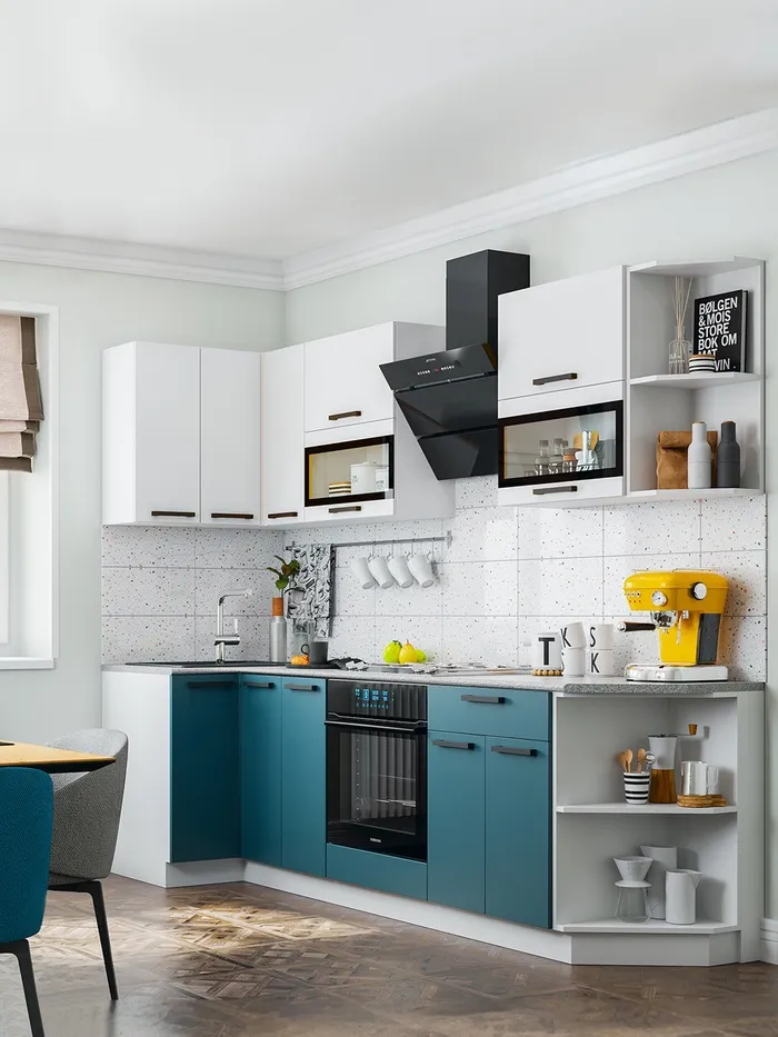 Кухонный гарнитур угловой «Техно», 900×2700 мм, цвет белый снег софт МДФ/атлантик софт МДФ