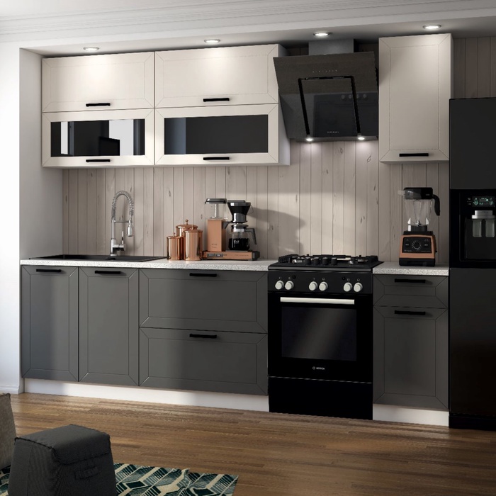 Кухонный гарнитур прямой «Монако» 2000 мм, цвет белый/софт графит