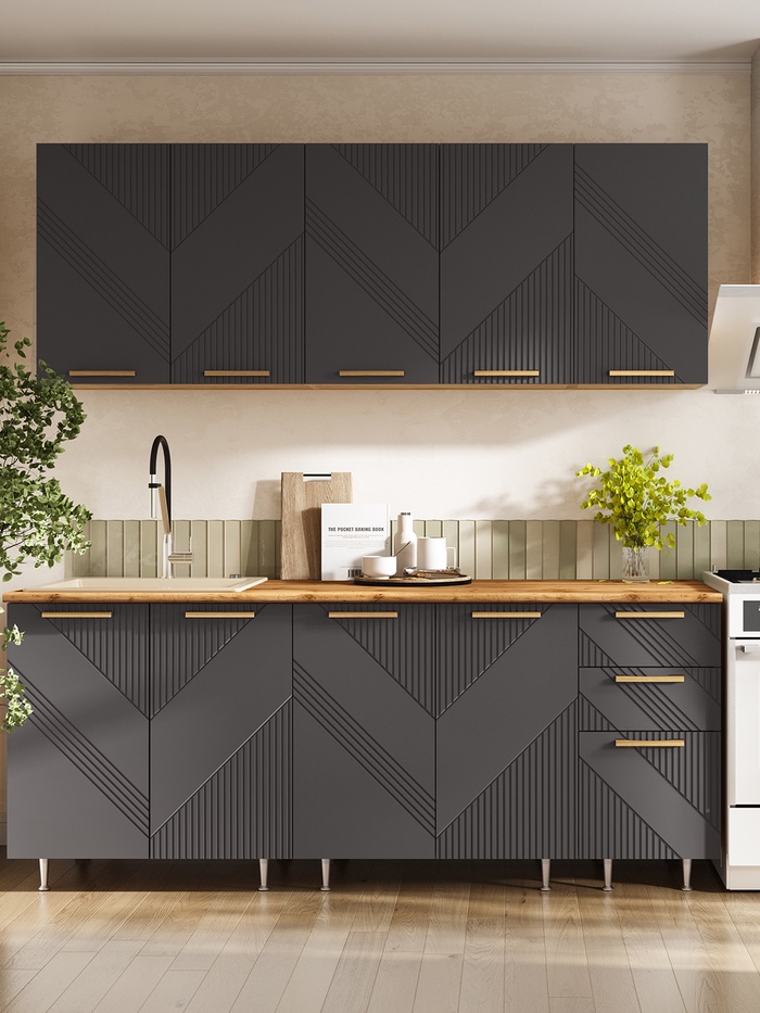 Кухонный гарнитур прямой «Ирис», с столешницей, 2000 мм, цвет браш графит МДФ/дуб крафт