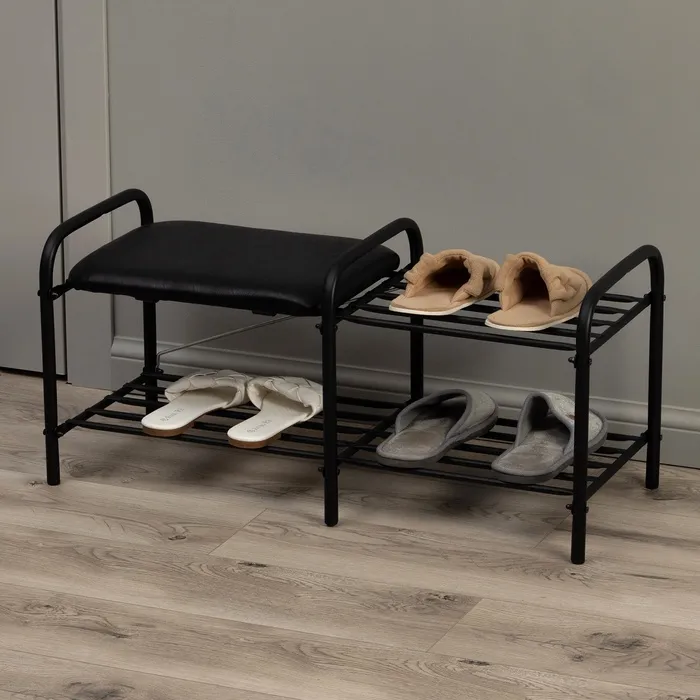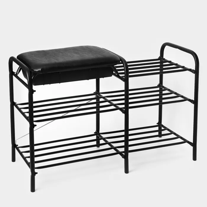 Этажерка для обуви с сиденьем «Люкс», 79×33×36 см, 2 полки, чёрная